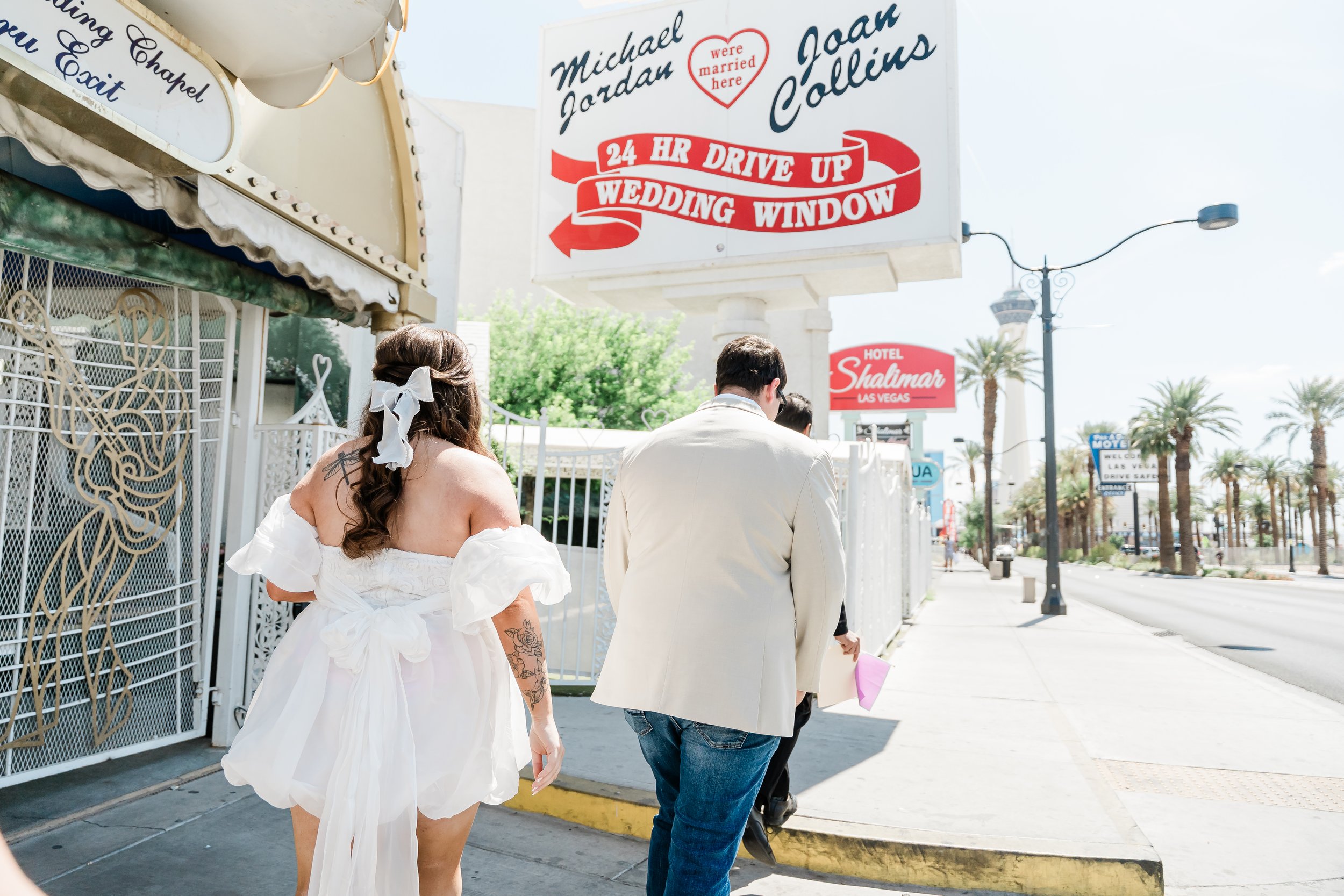 The day started off at their room at the cosmopolitan with hair and makeup, a few drinks and then down through the casinos and making our way to the little white chapel where they would check in and wait until their turn and even pick out a few flowers. Then when they were called, we all went into the chapel where the officiant actually did a great job and had music que’s for different parts of the ceremony that flowed really well. After they said their vows and made it official where we even got to be the witnesses. Afterwards, we got straight into photos around the chapel area while we had it and then eventually headed off to inn & out which jesse & kenna had never had before. of course we had to recommend all the go to things for them, they were already super hungry so it ended up being perfect timing and we then made our way to the belagio for a while, tried to get to where we could see the fountain show out front but needed to leave to be at the vegas sign in time to have some sunset photos there. We waited in the line there and then headed back to where we started at the cosmopolitan for a few photos and videos around the casino there. It was such a fun trip and they’re an amazing couple. We’re so happy they found each other and got to start their lives together in such a unique and fun way