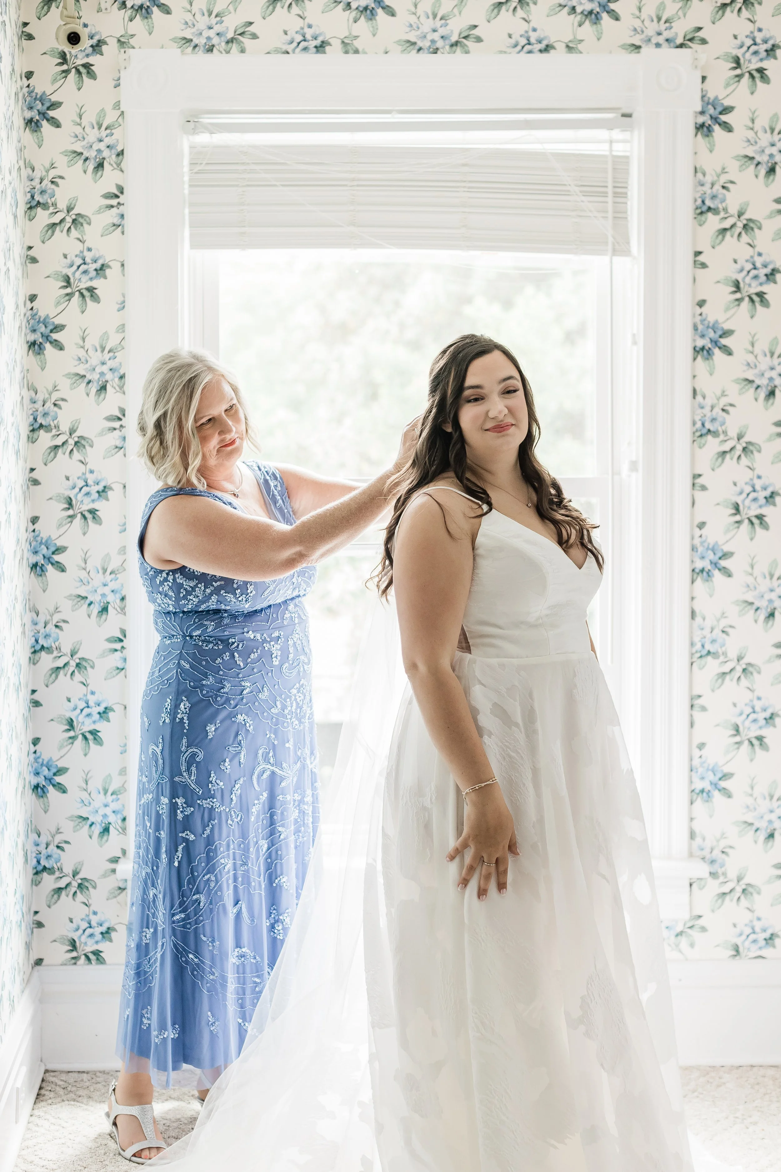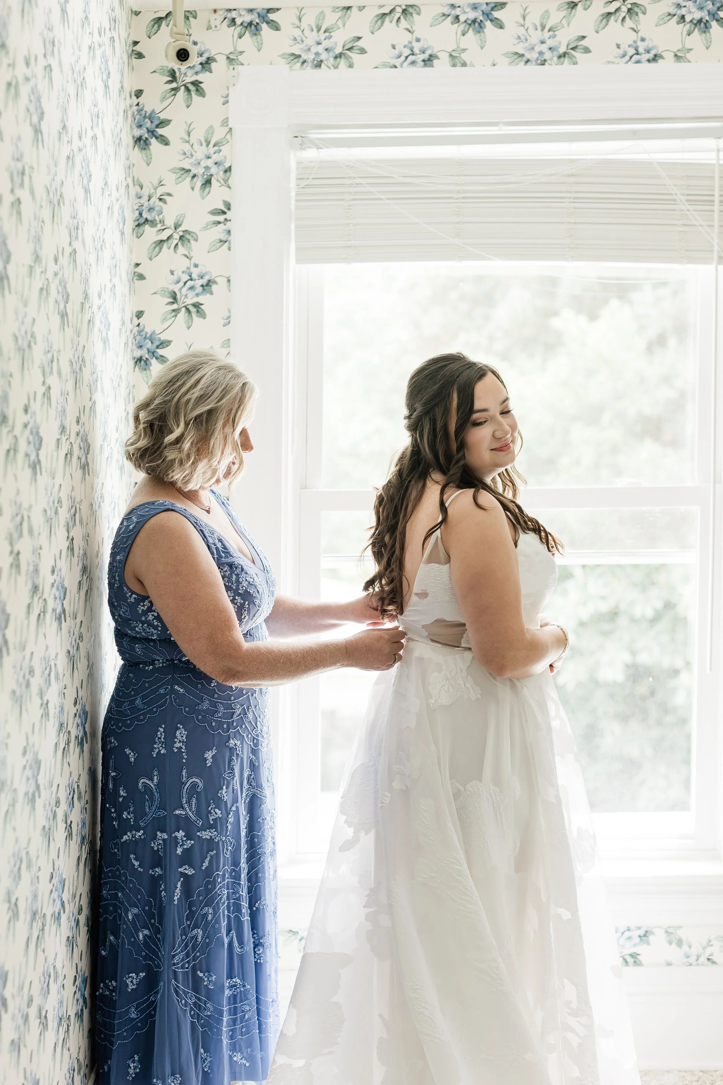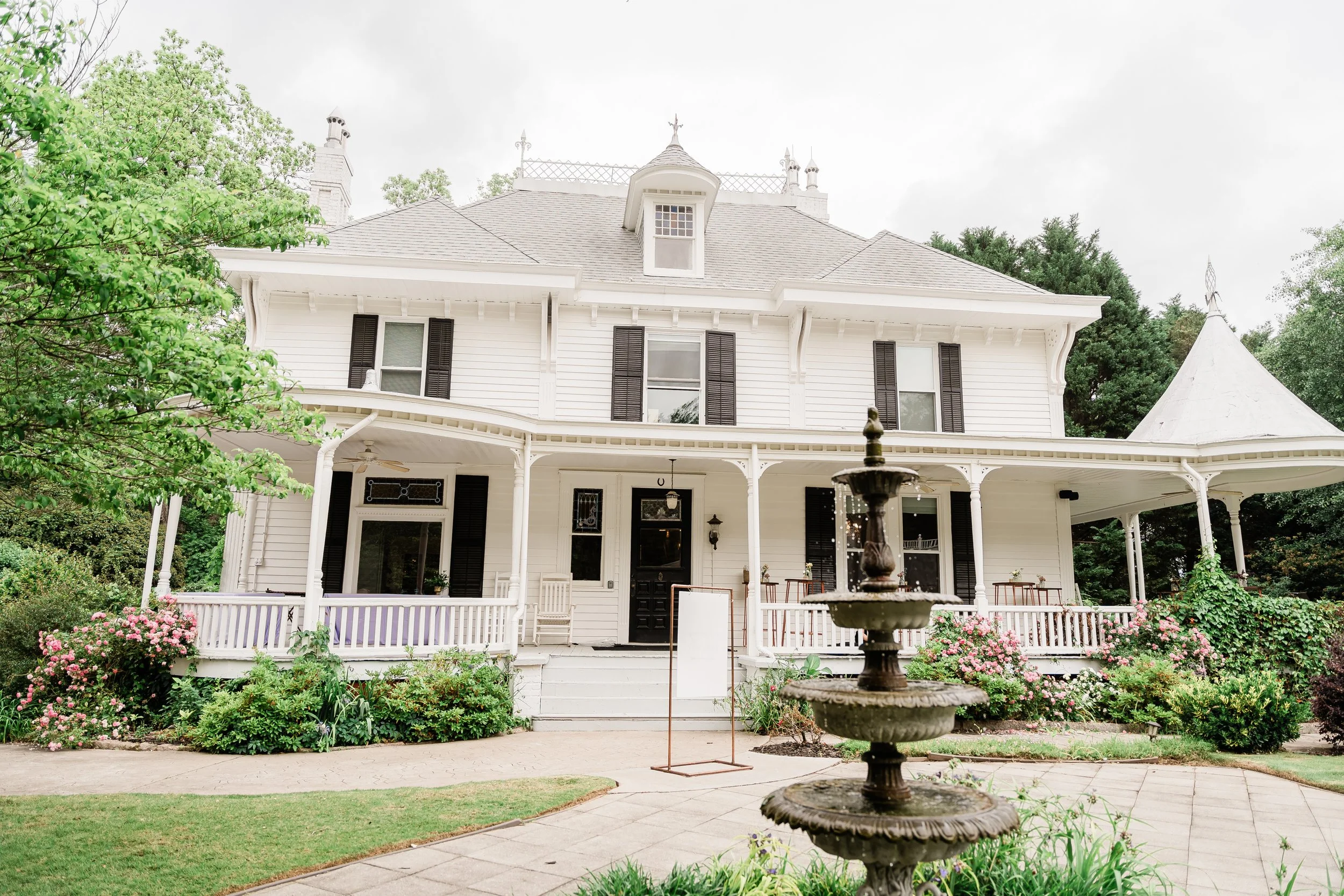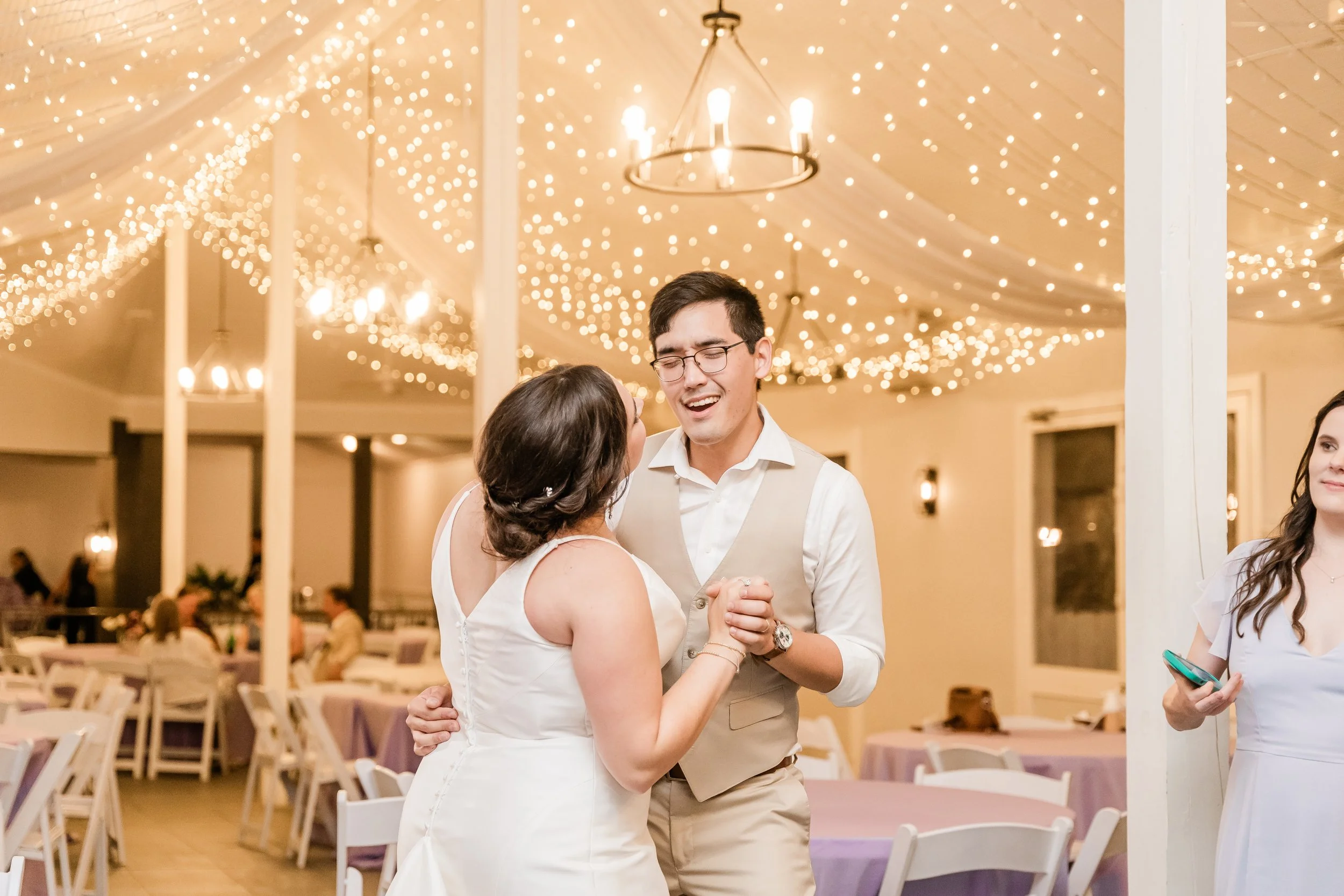 Halfway between Augusta and Atlanta on the national star wars holiday of may 4th, matt & kirsten’s wedding day was dreamy in so many ways. there were many classic touches and surprise little star wars winks hidden throughout. the wedding day itself was perfect and started off with everyone getting ready as we arrived to then do details. kirsten opened some of her gifts and continued to get into her beautiful dress as matt and his guys were in the whiskey room finishing up tying ties. once they were both ready, we set up around the ceremony area with matt to do a first look and private vows which also brings me to another point for this day. there happened to be a new brood of cicadas apparently and it was really loud which you can hear in the film at the beginning during their vows. From there, we did some formal photos and prepared for the ceremony which was inside due to the threat of rain that day. The ceremony was beautiful and had their corgis as a part of it as well as small little star wars trinkets hidden throughout the decor. Once they said their I do’s and kissed, they made their way out as husband and wife which dismissed to cocktail hour around the courtyard and patio. While that was happening, we went to the original ceremony location for family photos and some more formals afterwards. They then went to cocktail hour for a bit as the band made some final touches and we captured the reception space. Once it was time to announce them in, of course, they were announced by princess leia and storm troopers guarding the doors. They then went into their first dance and father daughter, mother son dances before being escorted back to their table by the storm troopers for dinner. from then on, it was basically a huge party where the band led with a bunch of fun songs. eventually, deep into the party of the night, we did a fake sparkler send off once the rain stopped and before too many people left. it was super funny and they laughed even through an accidental drop during a dip kiss and the sparkler line was ended by lightsabers as well which followed them running back inside and dancing the night away. it was such a joyful day and we loved being a part of every minute!